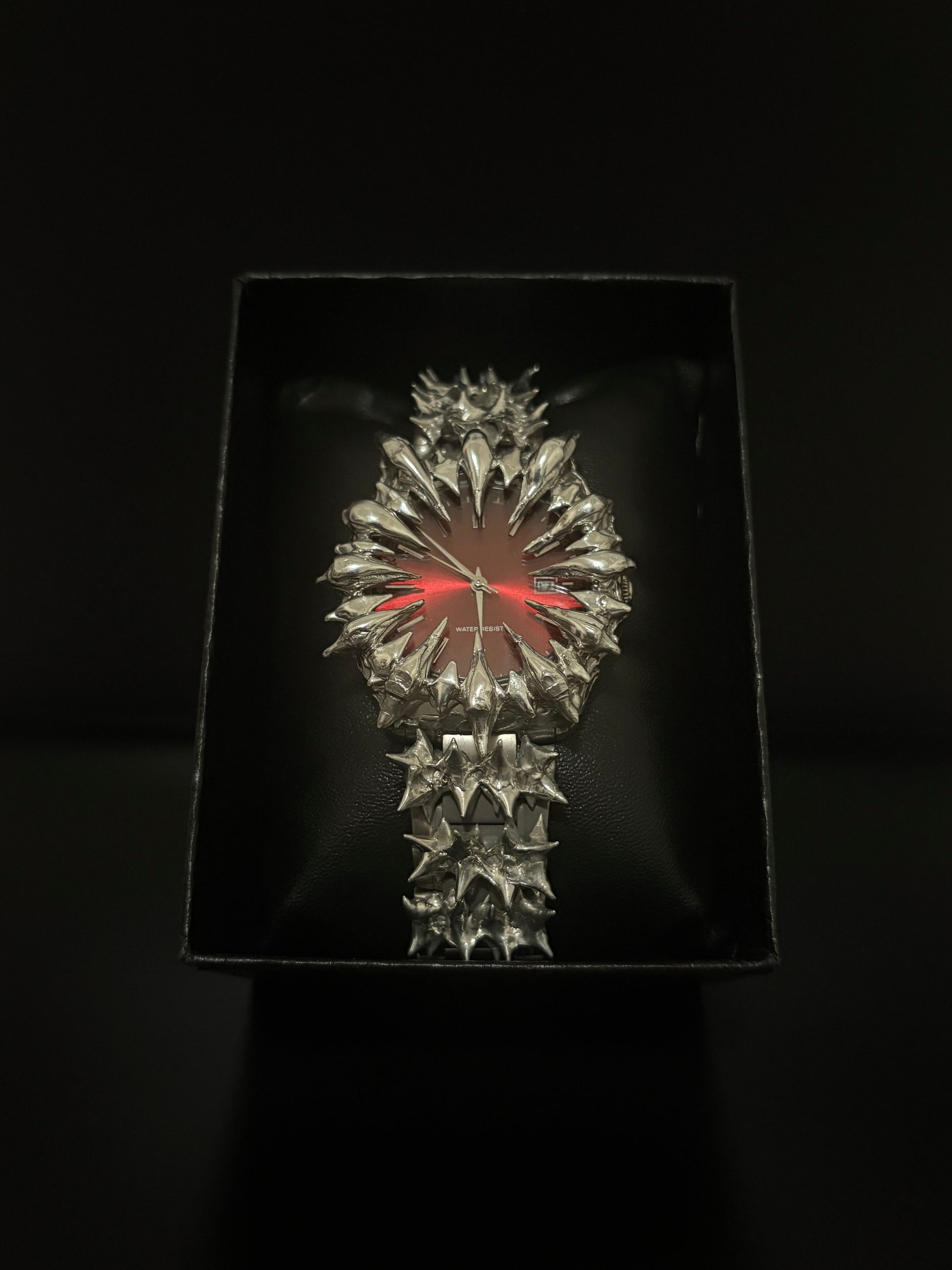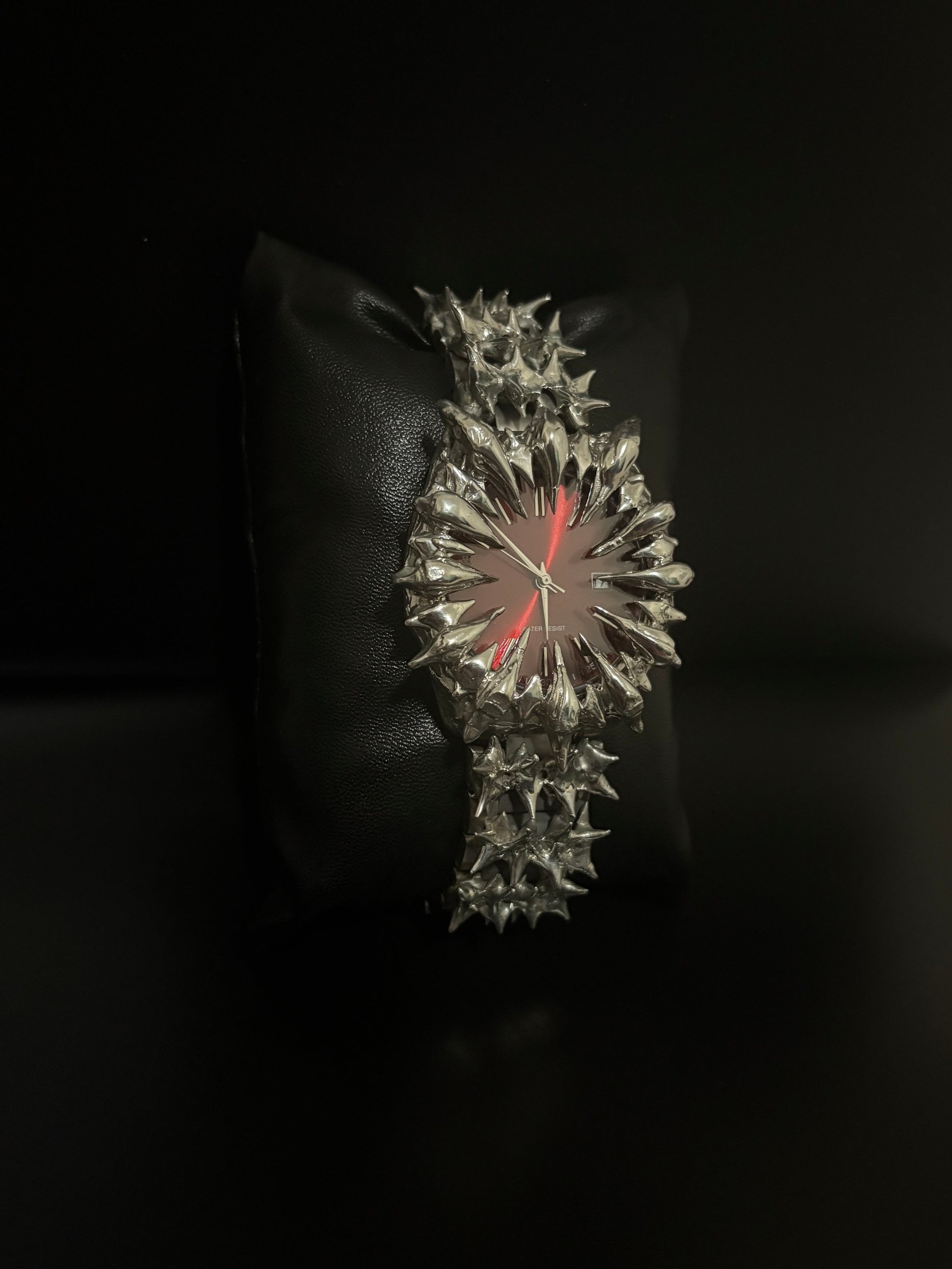 Step into the shadows of sophistication with the Obscura Red/Silver Watch
